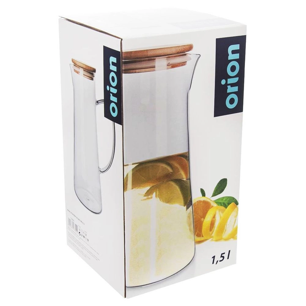 This stylish 1.35 L pitcher is made of durable borosilicate glass that handles temperatures from about 20 °C to 230 °C. Equipped with a natural bamboo lid and silicone seal, it keeps beverages fresh longer and protected from dirt and insects. The ergonomic handle and shaped spout ensure safe, precise, drip-free pouring.