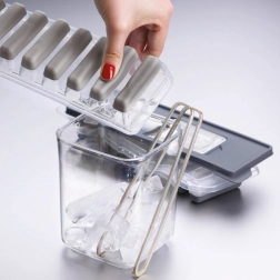 Simplify ice preparation for water, lemonades, and cocktails. This tray creates long, narrow cubes that fit perfectly into bottles where classic square cubes won’t. The elastic bottom allows quick and comfortable removal of each cube without breaking.