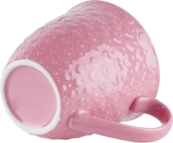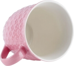 Large pink mug with a capacity of 580 ml for coffee and tea lovers. It has a durable ceramic build, a comfortable handle, and a relief heart pattern. Dishwasher- and microwave-safe, ideal for everyday use or as a stylish gift.