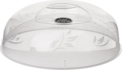 A practical transparent microwave cover with a diameter of 29 cm and a height of 11 cm reliably protects against splatters and drying out of food. It has a lockable steam vent for moisture control, a comfortable handle for easy removal, and is made from durable BPA-free material. The cover is dishwasher safe and withstands temperatures up to +95 °C.
