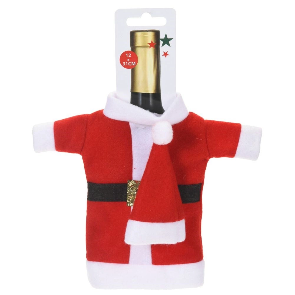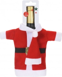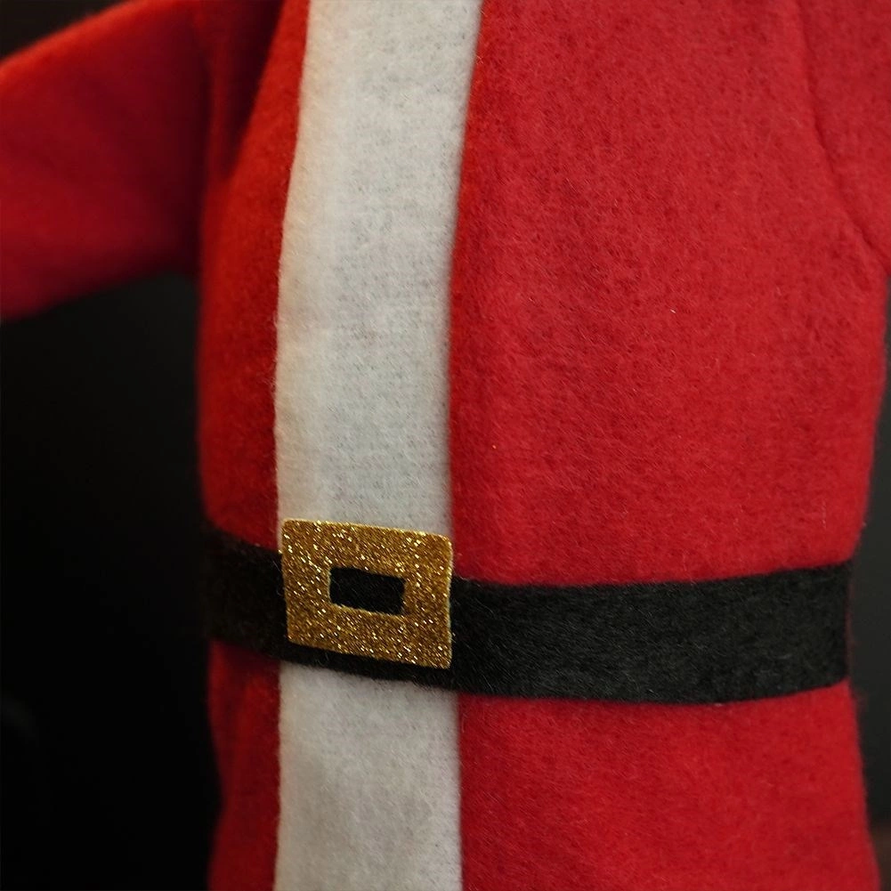 A stylish Christmas wine bottle cover shaped like Santa’s outfit turns any bottle into a unique decoration and gift wrap. The soft textile material in red and white with a belt and gold buckle brings a festive atmosphere to the table and under the tree. The universal size fits most wine bottles, liqueurs, and homemade infusions.