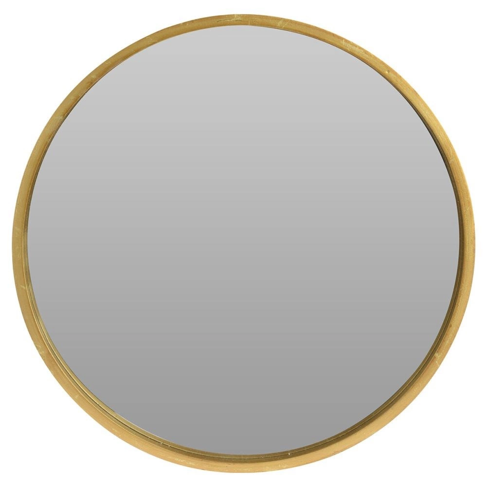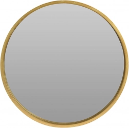 This stylish wall-mounted mirror with a 50 cm diameter is set in a robust wooden frame in a gold finish. The minimalist shape and luxurious tone of the frame make it a striking accent that highlights the character of your home or commercial spaces.