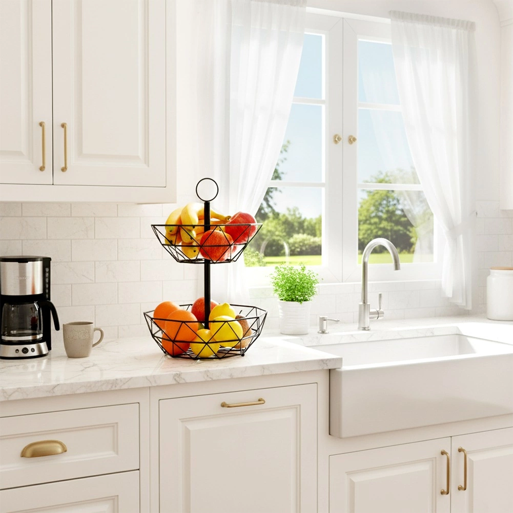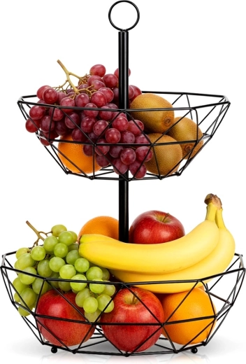 The two-level wire basket is a great solution for neat and hygienic storage of fruit, vegetables, and small items in the kitchen or dining room. Its open construction supports air circulation, keeping produce fresher for longer, while the vertical layout saves valuable countertop space.