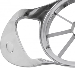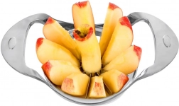 This robust slicer made of high-quality stainless steel in an elegant silver finish handles apples up to about 9 cm in diameter. With a single press, it creates even wedges while removing the core—ideal for snacks, salads, desserts, and baking.
