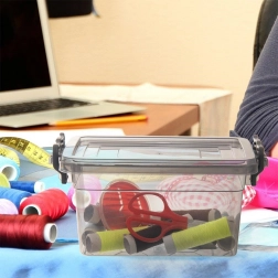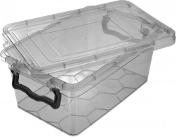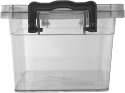 Practical storage box made of high-quality, health-safe plastic in a dark grey, transparent design allows instant content checks without opening. Thanks to the sturdy lid with two side clips, everything stays securely closed and protected from moisture and dirt.