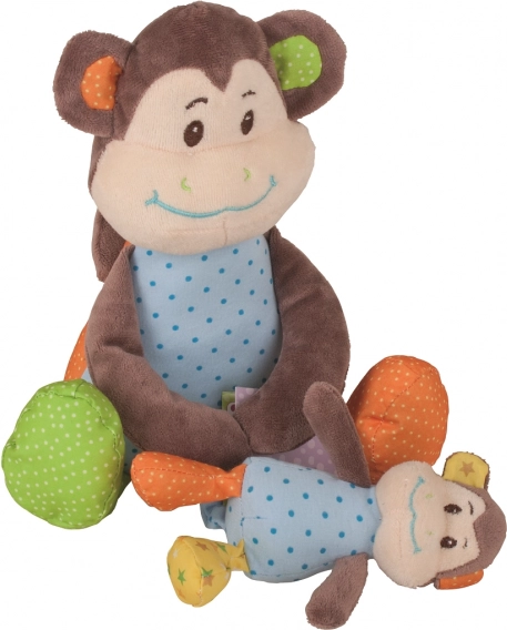 This large CHEEKY plush monkey from Bigjigs Baby is an ideal companion for the very youngest. The super-soft body, cuddly design, and detachable little monkey bring plenty of fun and soothing comfort. The integrated teether relieves sensitive gums, while the rattle stimulates hearing and attention.