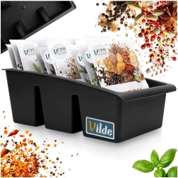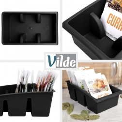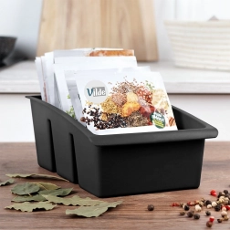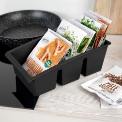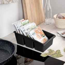 This practical kitchen organizer is designed for tidy storage of spice and herb sachets. Three separate sections keep sachets stable in an upright position, so you can always find what you need quickly. The black design fits any modern kitchen and the durable material is easy to clean.