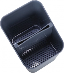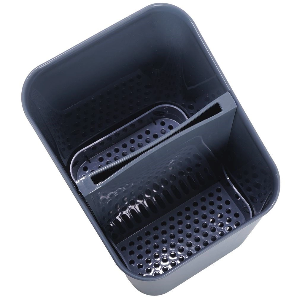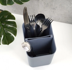 Keep your kitchen sink and worktop tidy. This grey cutlery drainer combines a durable build made of quality plastic with a smart internal layout. The removable insert divider creates two practical zones and, thanks to the drainage holes, water runs off so cutlery doesn’t sit in water and dries faster.