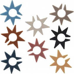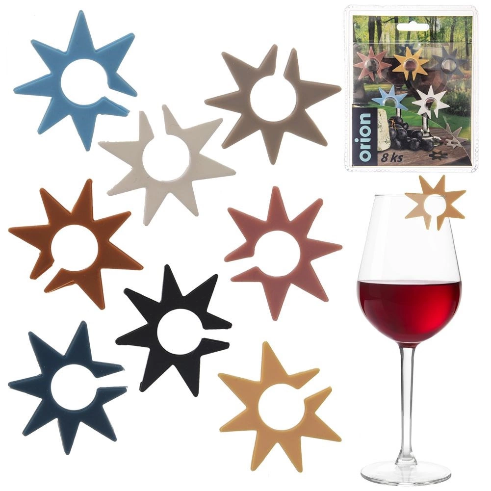 A practical set of 8 colorful star-shaped drink markers for glasses and stemware, making it easy to tell drinks apart at parties and family gatherings. Each marker has a different color, and thanks to the flexible silicone, they can be easily attached to the rim or the stem of the glass. They are reusable, color-coded, and easy to rinse clean under running water.