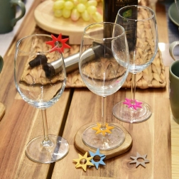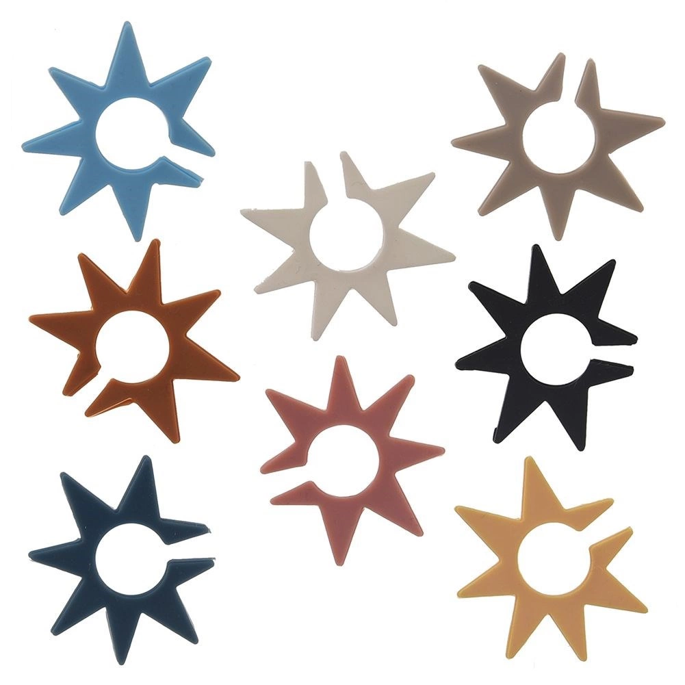 No more mixed-up glasses at parties. These star-shaped silicone markers, about 3 cm in diameter, easily attach to the rim or stem of a glass to clearly distinguish each guest’s drink. With 8 bold colors, everyone can pick their favorite.