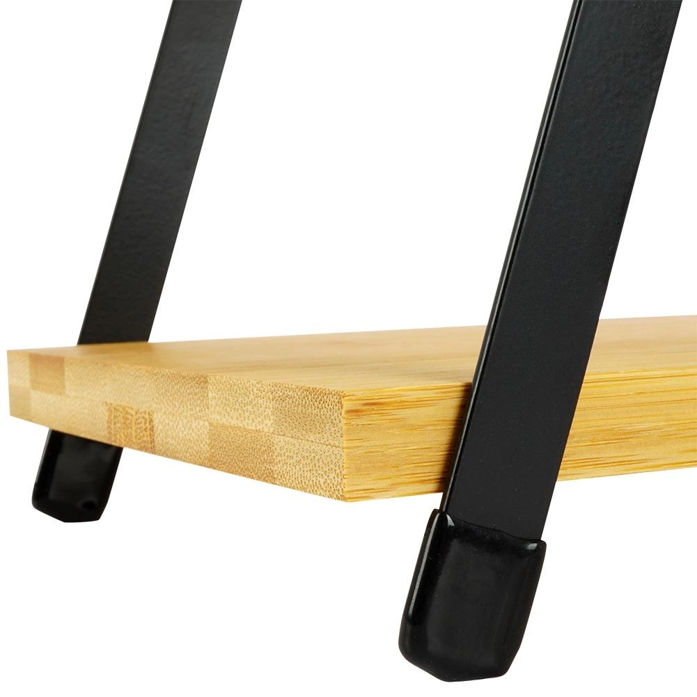 • Sturdy metal frame and bamboo shelves in a natural finish