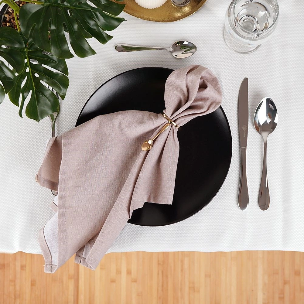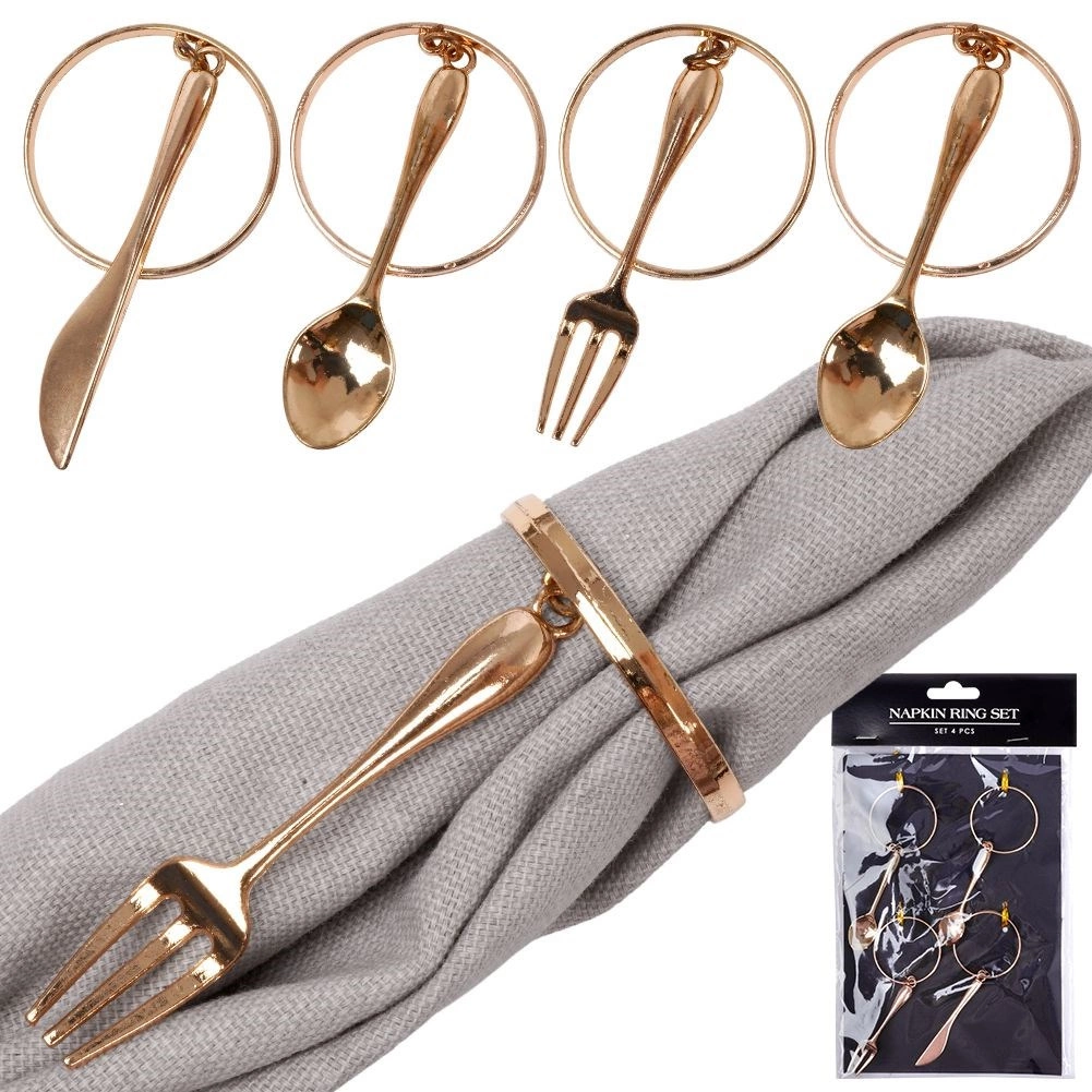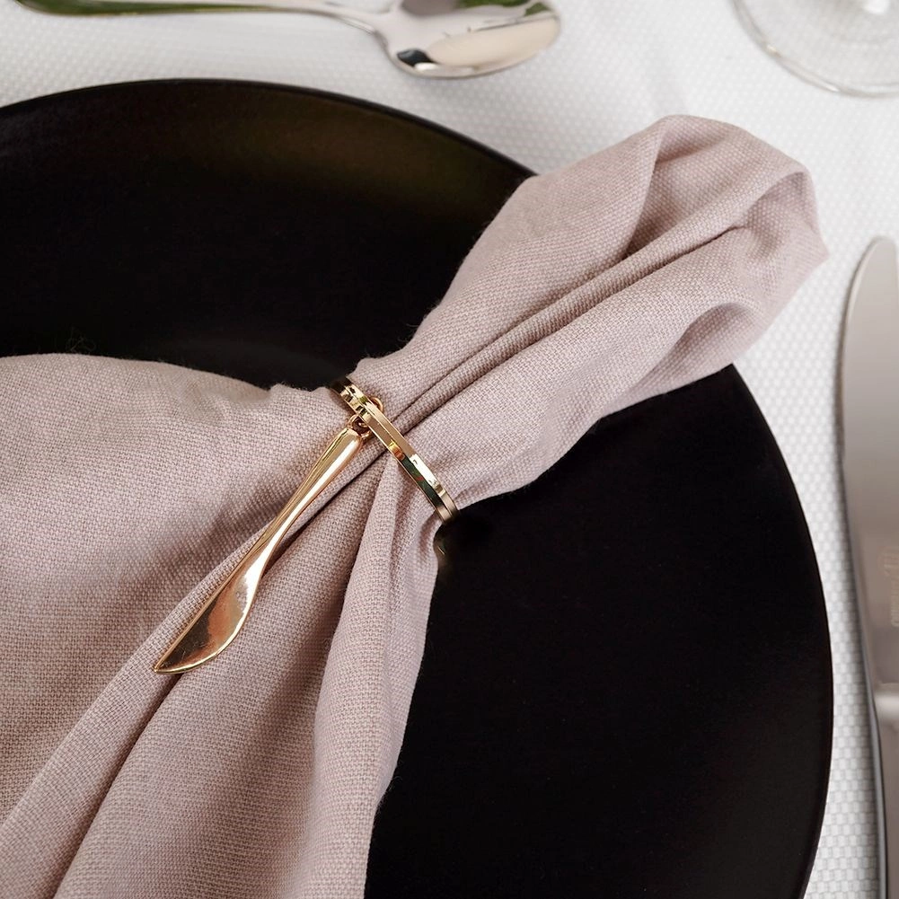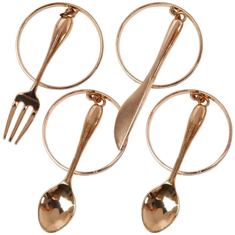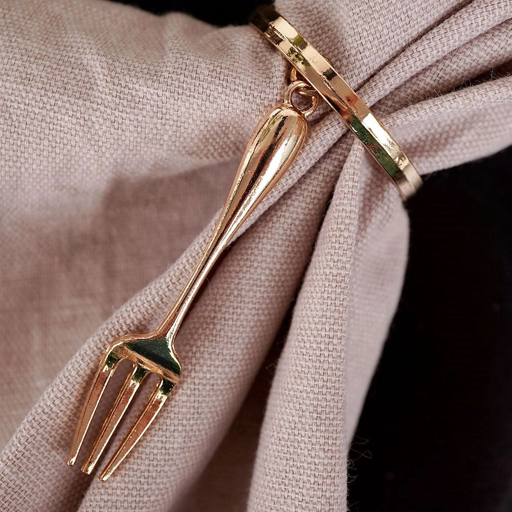 Elevate your dining with gold metal napkin rings that instantly enhance the atmosphere of family dinners and special occasions. The miniature cutlery-shaped charms create an original, playful decoration while keeping napkins neatly rolled.
