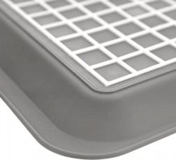 The gray serving tray is a reliable helper for serving drinks and dishes. Durable plastic with white accents and a non-slip finish ensures stability when carrying, both on the top surface and on the underside. Thanks to the raised edge, the tray is comfortable to hold and minimizes the risk of spills.