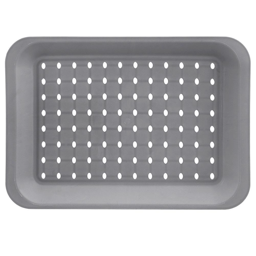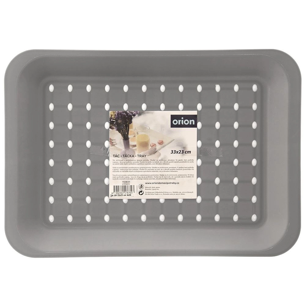 A practical gray serving tray measuring 33 × 23 × 2 cm, made of durable plastic, ideal for everyday use at home and in food service. Thanks to the non-slip surface on the top and bottom, mugs, glasses, and plates stay securely in place, while the raised edges make carrying comfortable and confident. Lightweight material, easy maintenance, and versatile use for breakfasts, desserts, and coffee.