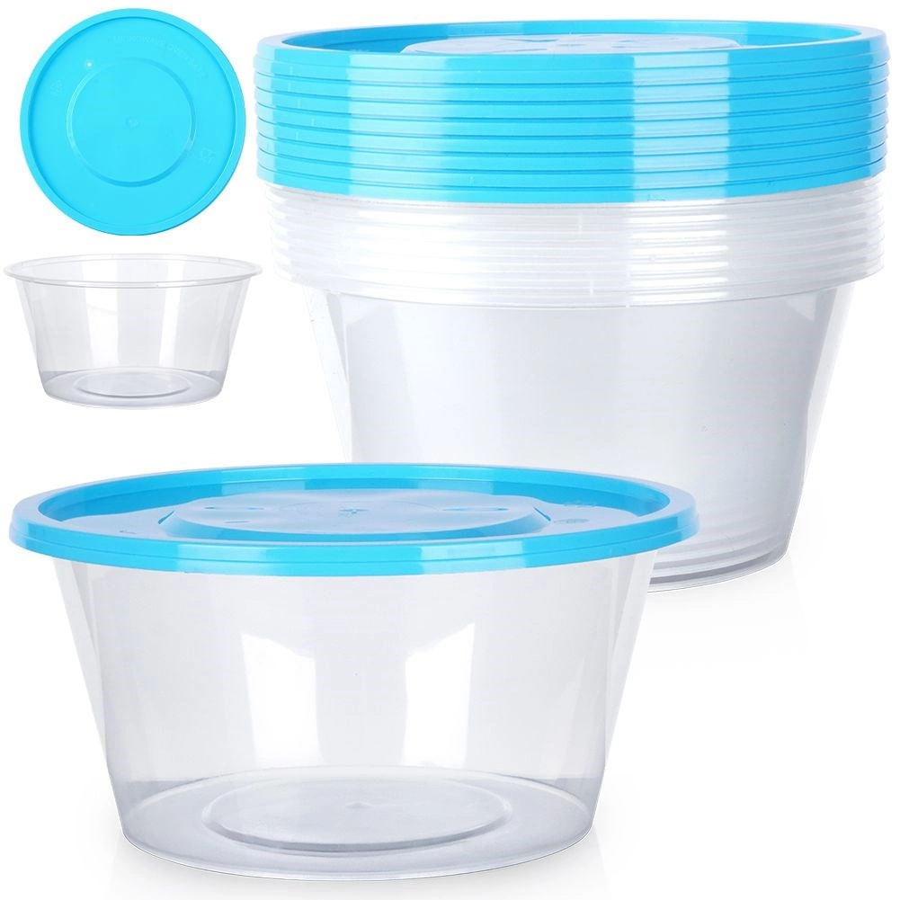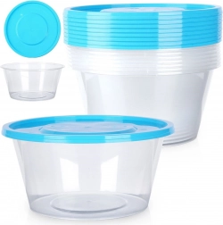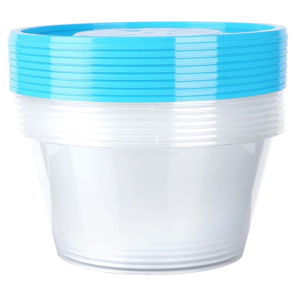 With this versatile set of 10 round 650 ml containers, you’ll keep your fridge and pantry tidy. The transparent walls provide instant visibility of contents, the blue lid ensures a reliable seal, and your food stays fresh longer. Thanks to the stackable shape, the containers save valuable space.