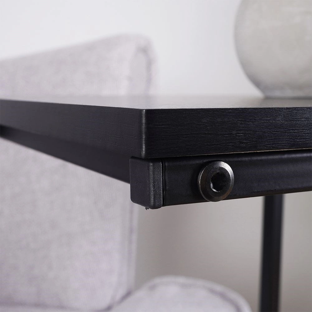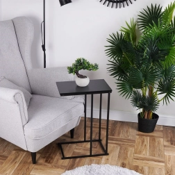 A stylish side coffee table in a modern loft design combining a sturdy metal frame and a durable MDF top in black. Perfect by the sofa, armchair, or bed—for coffee, a laptop, or breakfast. Stable construction, compact dimensions, and versatile use for home, office, or study.
