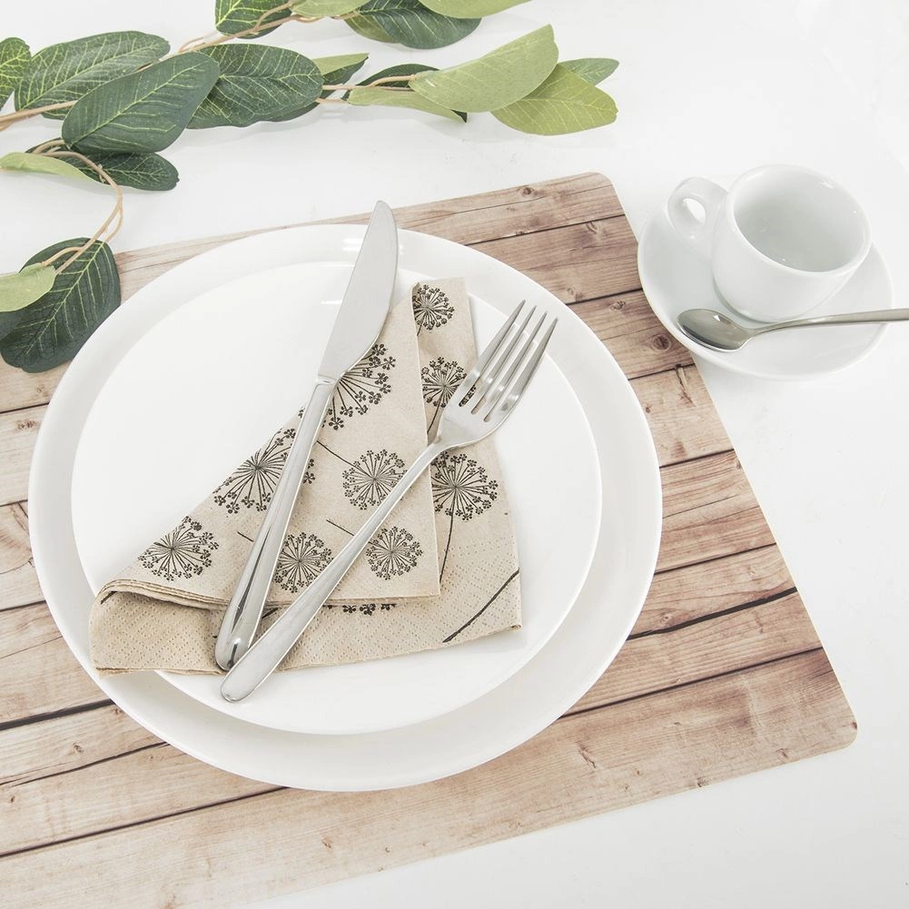 A practical and decorative table mat that creates a cohesive and aesthetic setting for plates and cutlery. The realistic wood decor gives the table a cozy look while providing reliable protection of the surface from stains, heat, and minor mechanical damage.