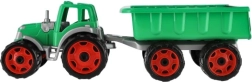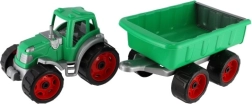The tractor's details and its functional trailer allow for realistic play, where children can transport cargo and simulate real agricultural activities.