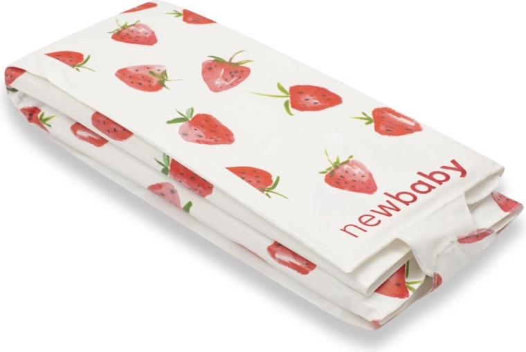 A practical and lightweight travel changing mat New Baby Strawberry made from waterproof material with soft polyurethane foam for comfortable changing anywhere on the go. It is foldable, takes up almost no space, and is made of a certified film gentle on delicate baby skin.