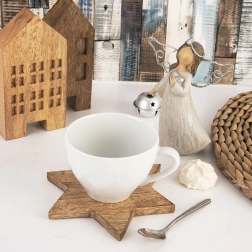 A stylish wooden star-shaped coaster made from durable mango wood protects your table from heat and moisture. It is versatile, practical, and thanks to its natural grain beautifully complements any interior.