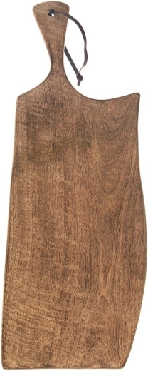 Stylish wooden board made of mango wood for everyday cutting and striking serving. It offers moisture resistance, sturdy craftsmanship, a comfortable handle, and a hanging loop. Thanks to the natural wood grain and unique shape, it becomes a highlight of any kitchen and table.