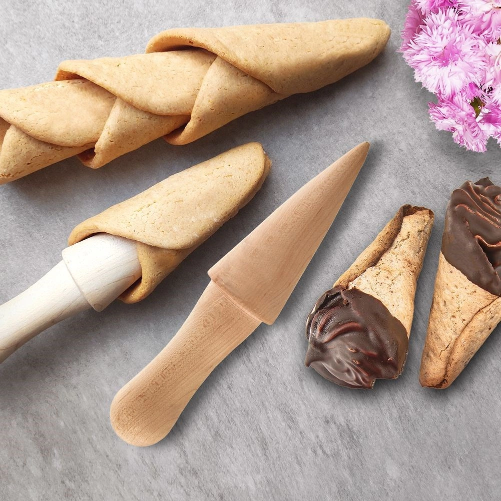 This beech wood cone mold features an ergonomic conical shape that makes it easy to roll dough evenly and bake in the oven. It is reusable, resistant to damage, and with proper care will last for many years.