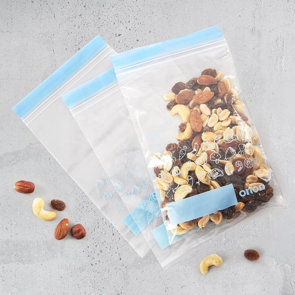 These universal zip bags help keep your kitchen and home organized. They are reusable, transparent, and have a dedicated area for labeling, so you always know what’s inside. The double snap-lock seal ensures reliable tightness and protects the contents from air and moisture.