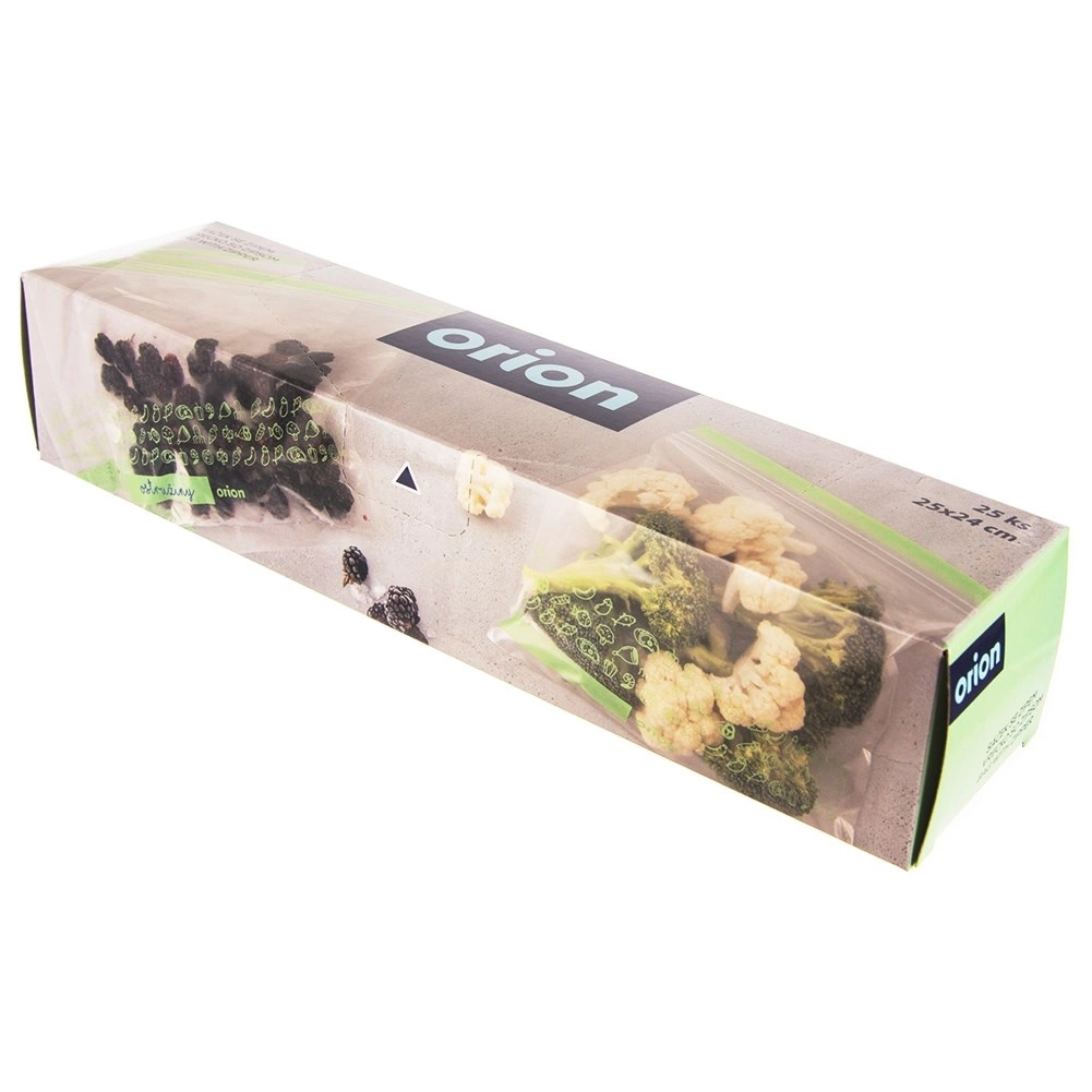 A practical set of 25 transparent zip bags measuring 25 × 24 cm for versatile household use. Thanks to the double zipper, the bags are fully leakproof, suitable for the fridge and freezer, and reusable. Great for storing food, dry ingredients, and small items. They have a label area for easy organization.