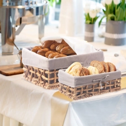 The basket is perfect for neatly storing cosmetics, accessories, laundry, or small items in the bathroom, bedroom, or closet. Thanks to its attractive look, it also serves as a serving basket for bread and pastries at breakfasts, buffets, or family gatherings.