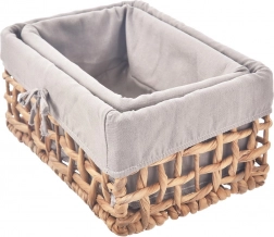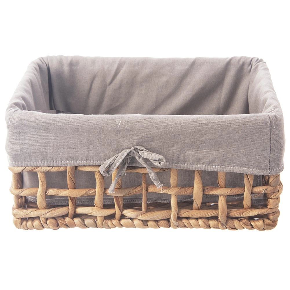 This practical and decorative basket is woven from a natural material (water hyacinth) on a sturdy metal frame, so it keeps its shape and offers long-lasting durability. The soft textile liner in an elegant gray protects stored items and can be easily removed and washed at up to 30 °C.