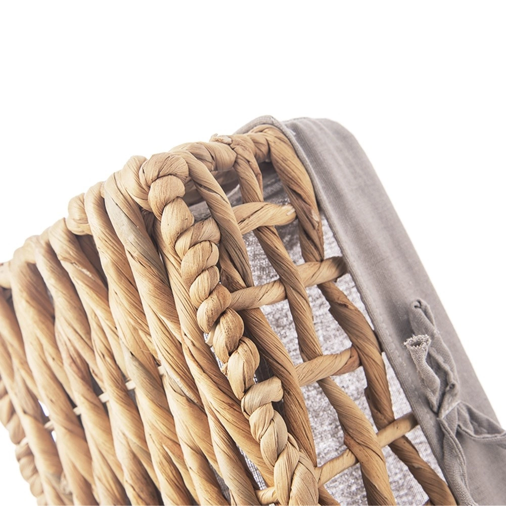 The basket is woven from water hyacinth on a sturdy metal frame for stability, durability, and long service life.
