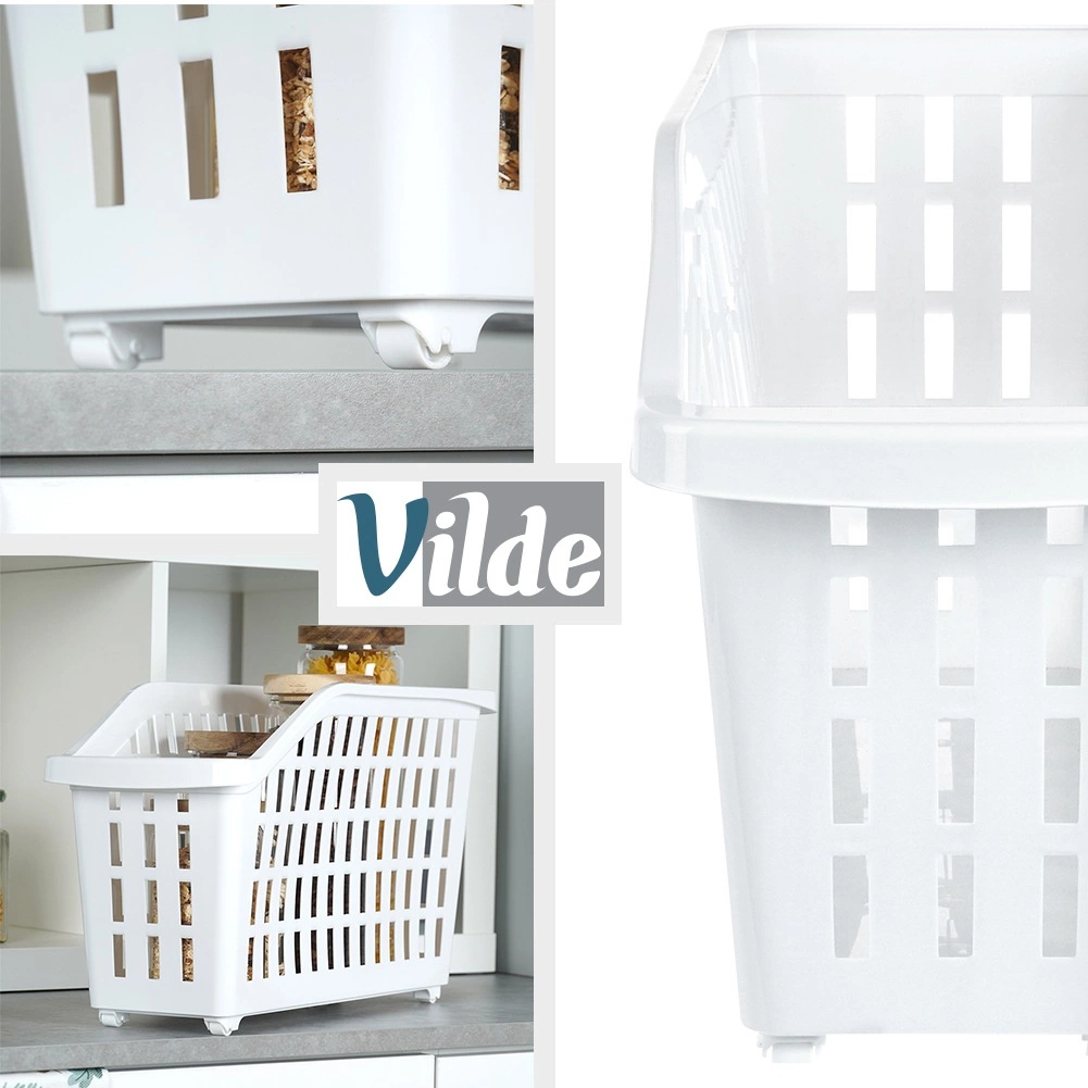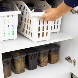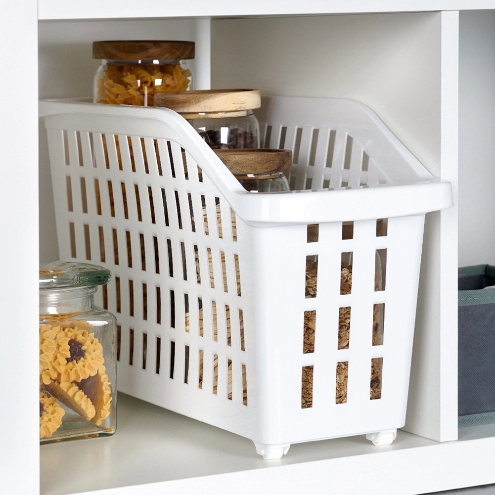 The versatile rolling organizer is ideal for the kitchen, pantry, bathroom, closet, and garage. The white, high-quality plastic design is sturdy yet lightweight, and the perforation provides better visibility of the contents and hygienic air circulation. The narrow profile saves space and fits into tight gaps between shelves.