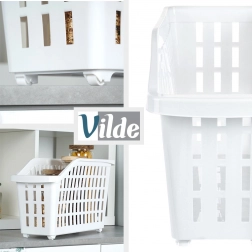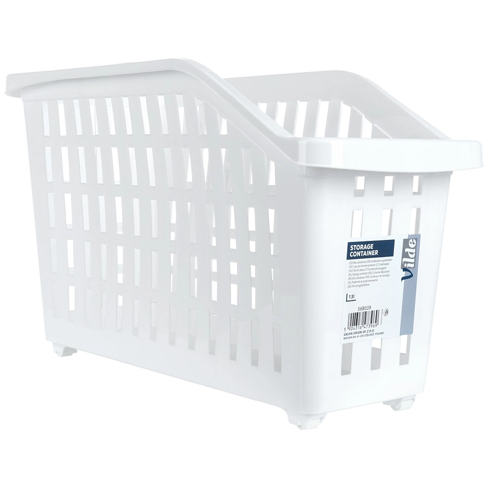 A practical 13 L storage basket on wheels helps keep your entire home tidy. It is lightweight and durable, has ventilated sides for air circulation, and thanks to its narrow, tall shape it fits even in small spaces. Four wheels make it easy to pull out of a cabinet even when fully loaded.