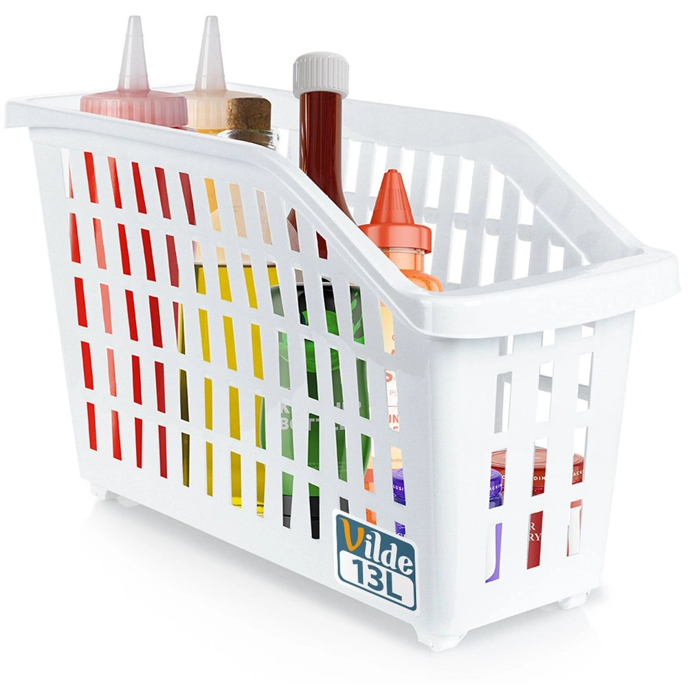 Thanks to the four smooth wheels, you can easily slide the basket out even when fully loaded. Raised edges serve as practical handles for comfortable carrying. It’s perfect for cleaning supplies, drinks, and food, and works just as well in the office or workshop.