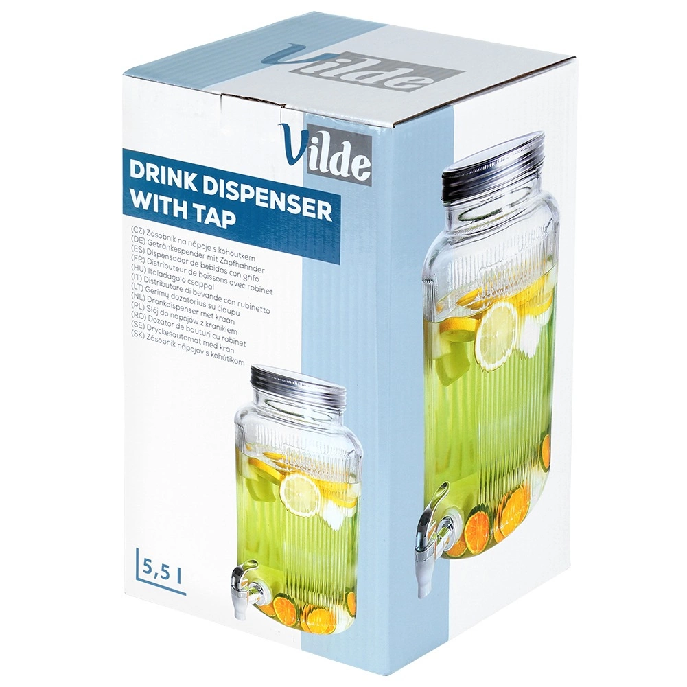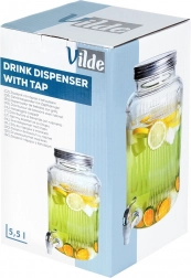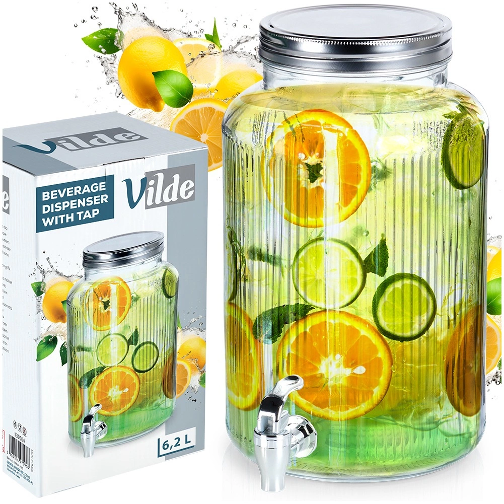 The large-capacity glass dispenser with tap makes serving drinks easy on any occasion. The wide mouth ensures convenient filling and cleaning, the transparent body lets you monitor the contents, and the metal lid reliably protects the drink from insects. Ideal for citrus water, homemade lemonade, juices, sangria, or punch (not for hot beverages).
