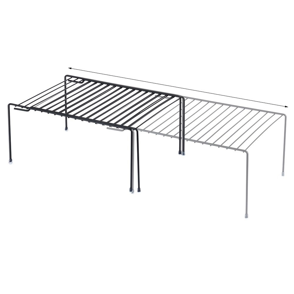 Make the most of every shelf. This expandable metal shelf in elegant black efficiently divides cabinet height into two levels, keeping dishes, cans, or jars neatly organized and safely stored. Thanks to smooth length adjustment from 34.5 to 48 cm, it easily adapts to cabinets and shelves of various widths.