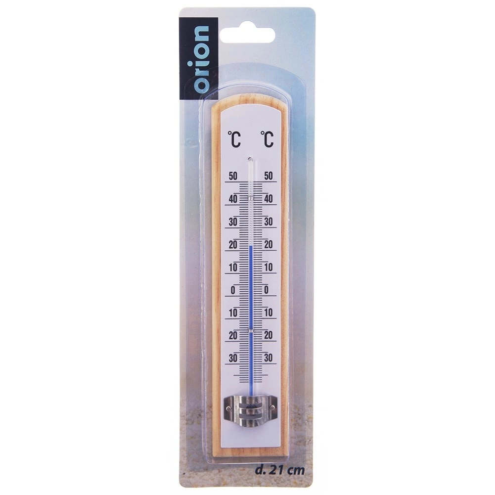 Universal wooden thermometer for measuring temperature indoors and outdoors with a clear scale from -38 °C to 50 °C. Classic design, natural wood, option to hang on the wall, and easy temperature reading on the balcony, terrace, and indoors.