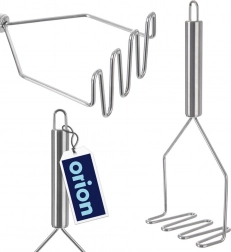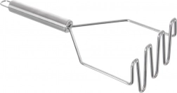 Practical stainless steel potato masher with a length of 24 cm and a working surface of 10.5 × 6 cm for quick and even mashing. Thanks to the all-metal construction it is durable, easy to clean, and dishwasher safe. The ergonomic handle with hanging loop allows for a comfortable grip and hanging on a rail. Ideal for smooth purée from potatoes, vegetables, and fruit.