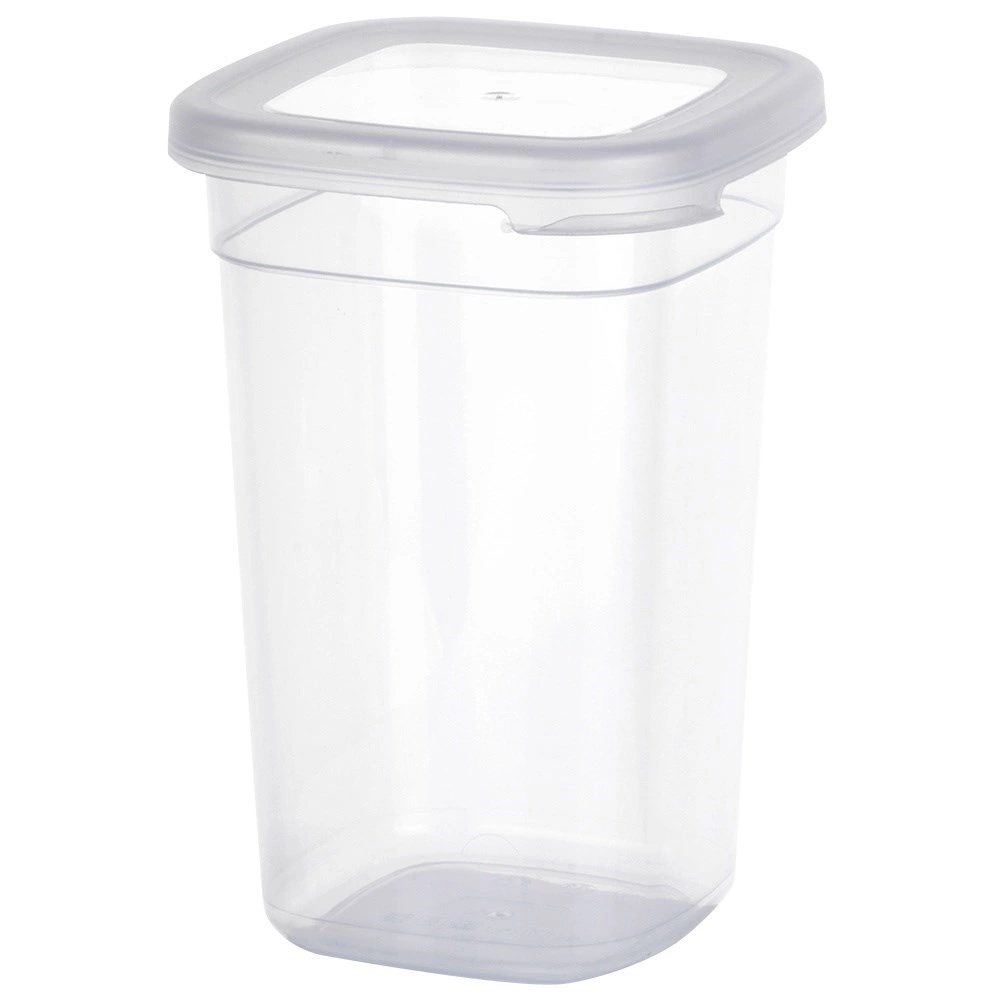 Practical 1 L kitchen container with an airtight lid, ideal for dry foods such as coffee, pasta, or nuts. Transparent walls for quick content checks, BPA-free, suitable for the fridge, freezer, microwave (without lid), and dishwasher. Dimensions 11 × 11 × 16 cm.