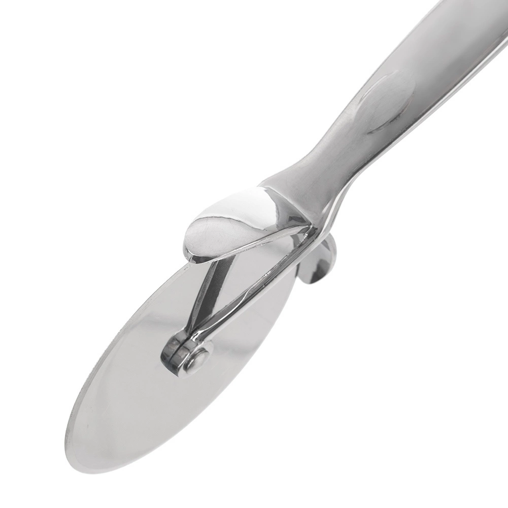 The sharp stainless-steel rotary wheel easily glides through crust and generous toppings, creating even slices without tearing.