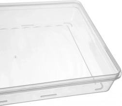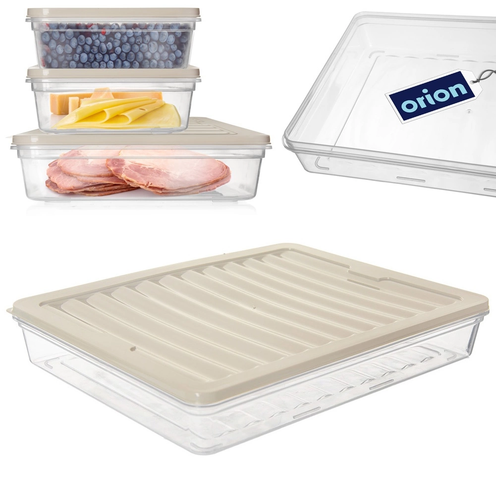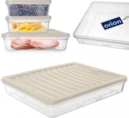 Keep your fridge and pantry tidy with this low food storage box with a 2 l capacity. The clear body lets you see the contents instantly without opening, while the cream-colored lid ensures safe, hygienic closure. Its slim profile is perfect for storing sliced cheeses, ham, salami, and other neatly prepared snacks.