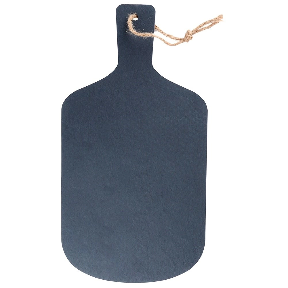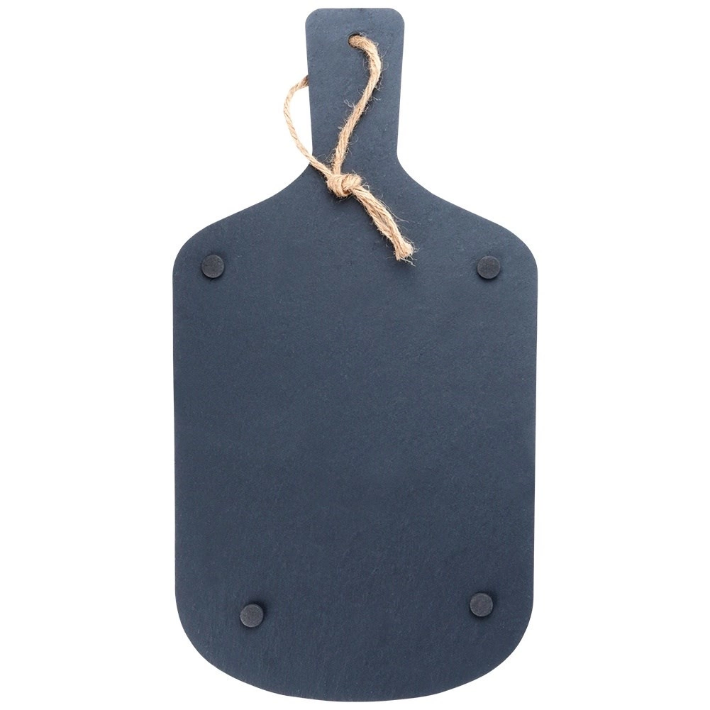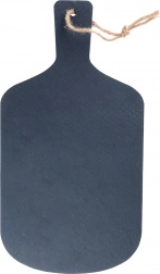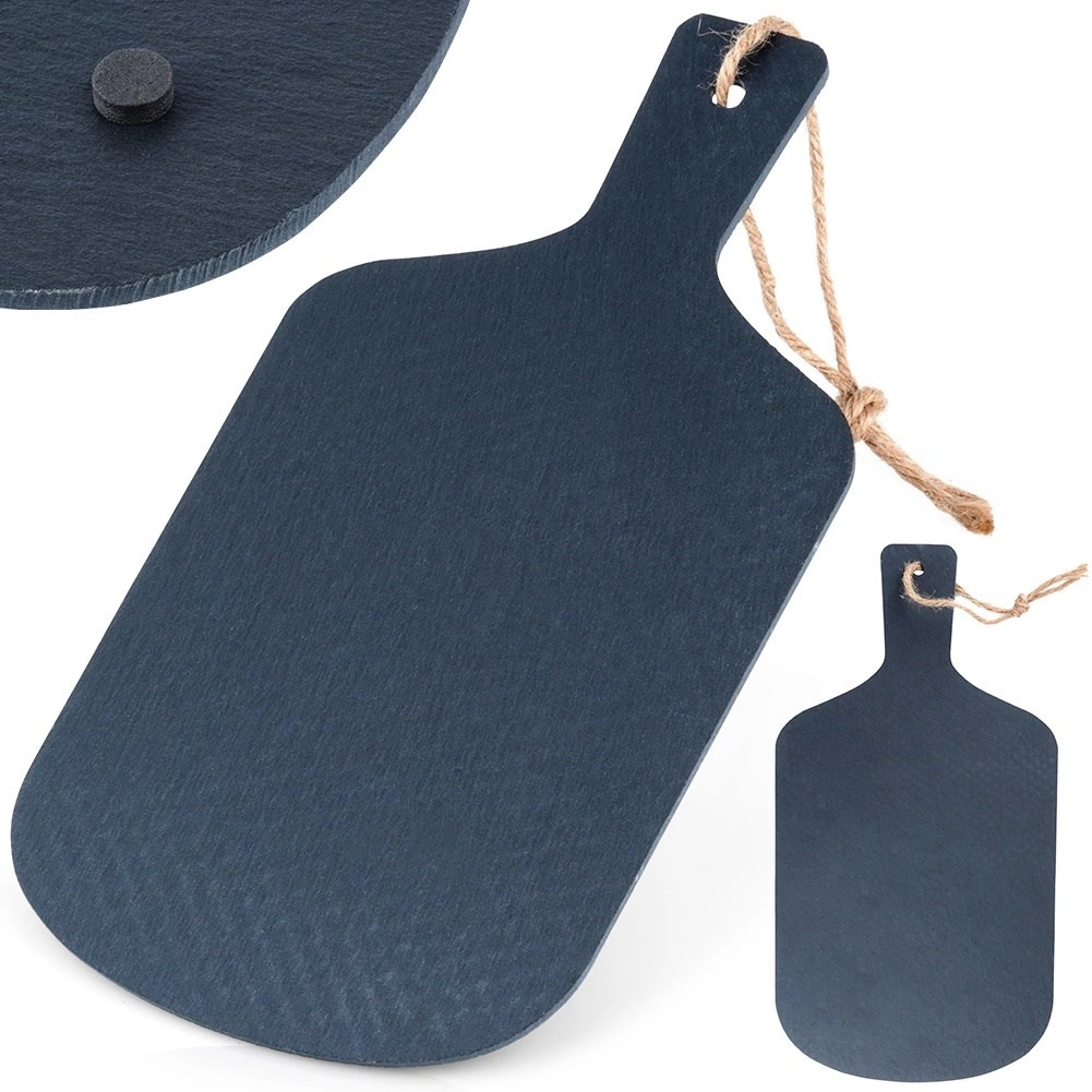 Elegant serving board made of natural slate stone in black with a practical handle and hanging cord. Ideal for cheeses, cold cuts, desserts and appetizers, with non-slip pads for stability. You can also use it as a stylish trivet for cookware.