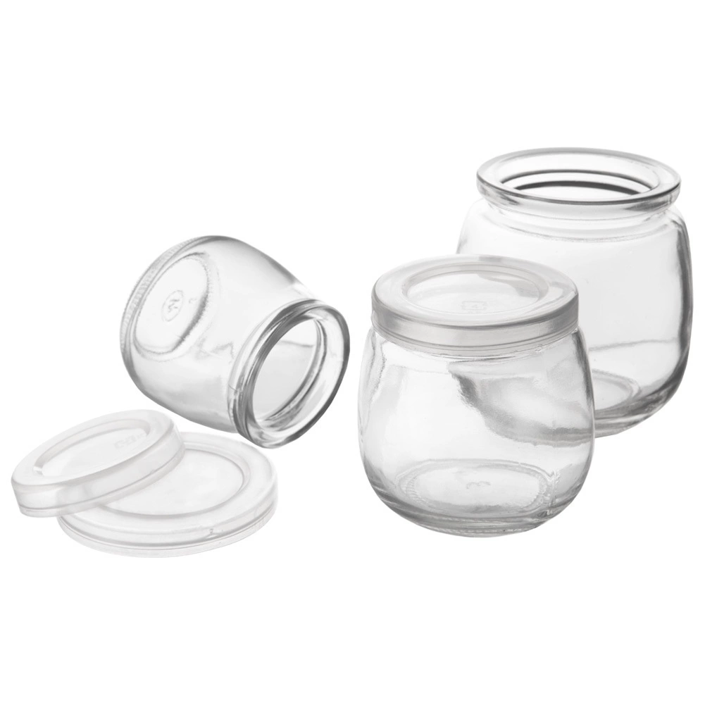Made from clear, thick glass for durability and easy maintenance. The jars are dishwasher-safe, can be stored in the fridge and freezer, and are suitable for use up to +80 °C. With a capacity of 300 ml, they offer an ideal single-serving size.