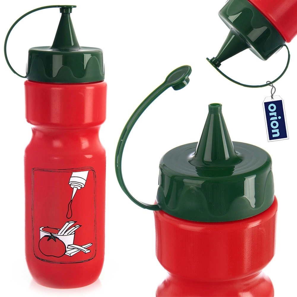 Practical 680 ml dispensing bottle for ketchup and sauces with a precise narrow spout and flip cap. A durable yet flexible plastic body ensures easy squeezing, an ergonomic shape provides a comfortable grip, and controlled dispensing without spills. Red design for easy identification in the kitchen.