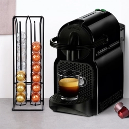 Keep your capsules organized and your favorite coffees always at hand. This stylish stand made of durable black metal holds up to 32 NESPRESSO capsules and, thanks to four clear columns, makes it easy to refill and remove capsules from the bottom.
