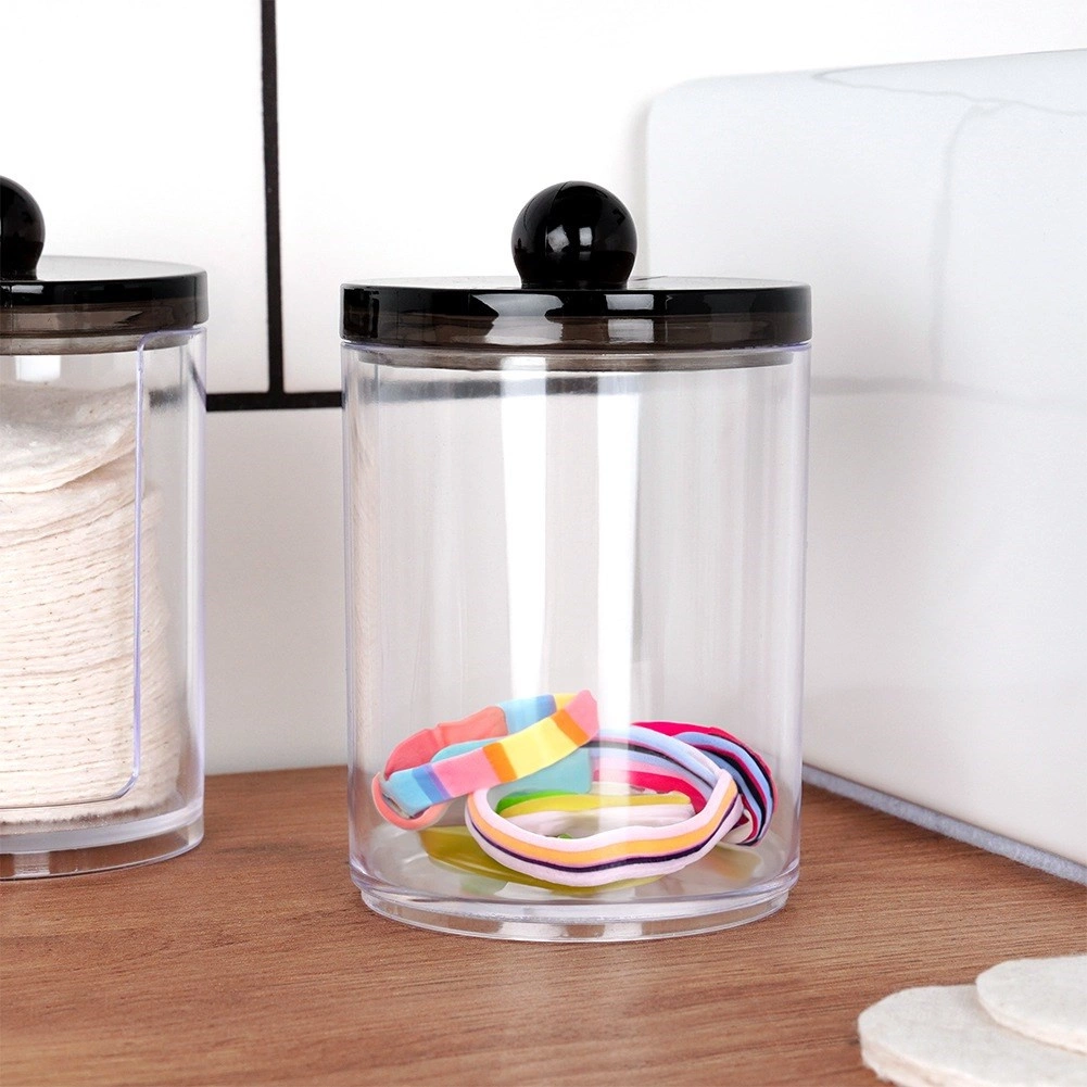 Crystal-clear walls made of durable acrylic let you monitor supplies, while the elegant black lid adds a modern accent to your bathroom.