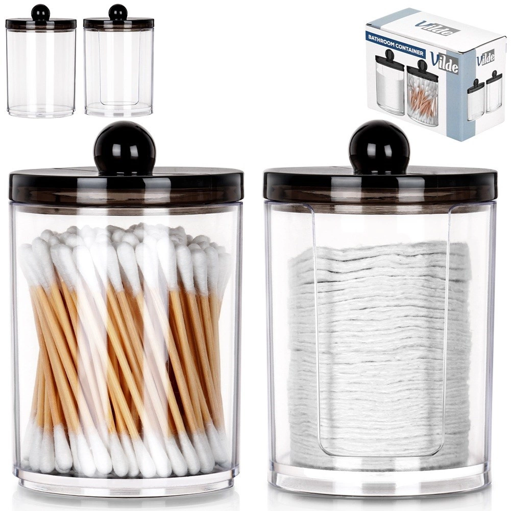 Keep your bathroom organized and hygienic. Transparent jars let you check quantities at a glance, and the lids with a comfortable knob protect contents from dust and moisture. Thanks to the dispenser, you will have pads always at hand, while the second jar holds plenty of cotton swabs.