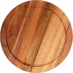 This compact, robust board made from natural acacia wood stands out with beautiful grain and high durability. The deep perimeter groove captures juices from meat, fruit, and vegetables, keeping your countertop clean. Thanks to its versatile round shape, it also works as a serving platter for cheeses, cold cuts, fruit, or small refreshments.