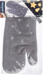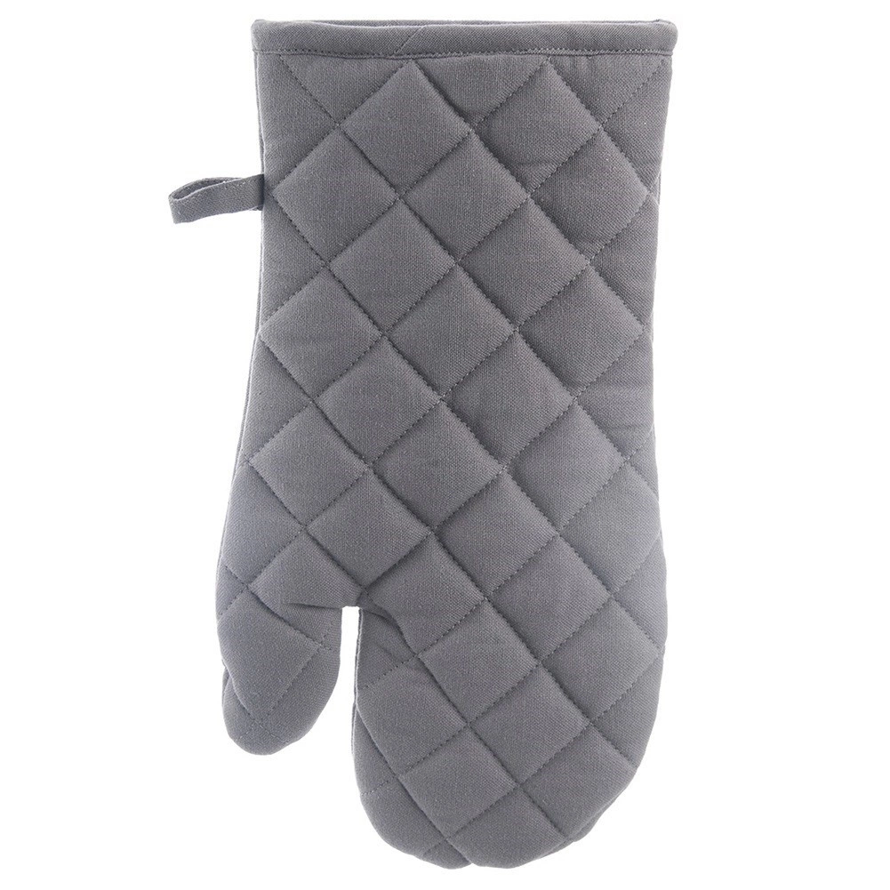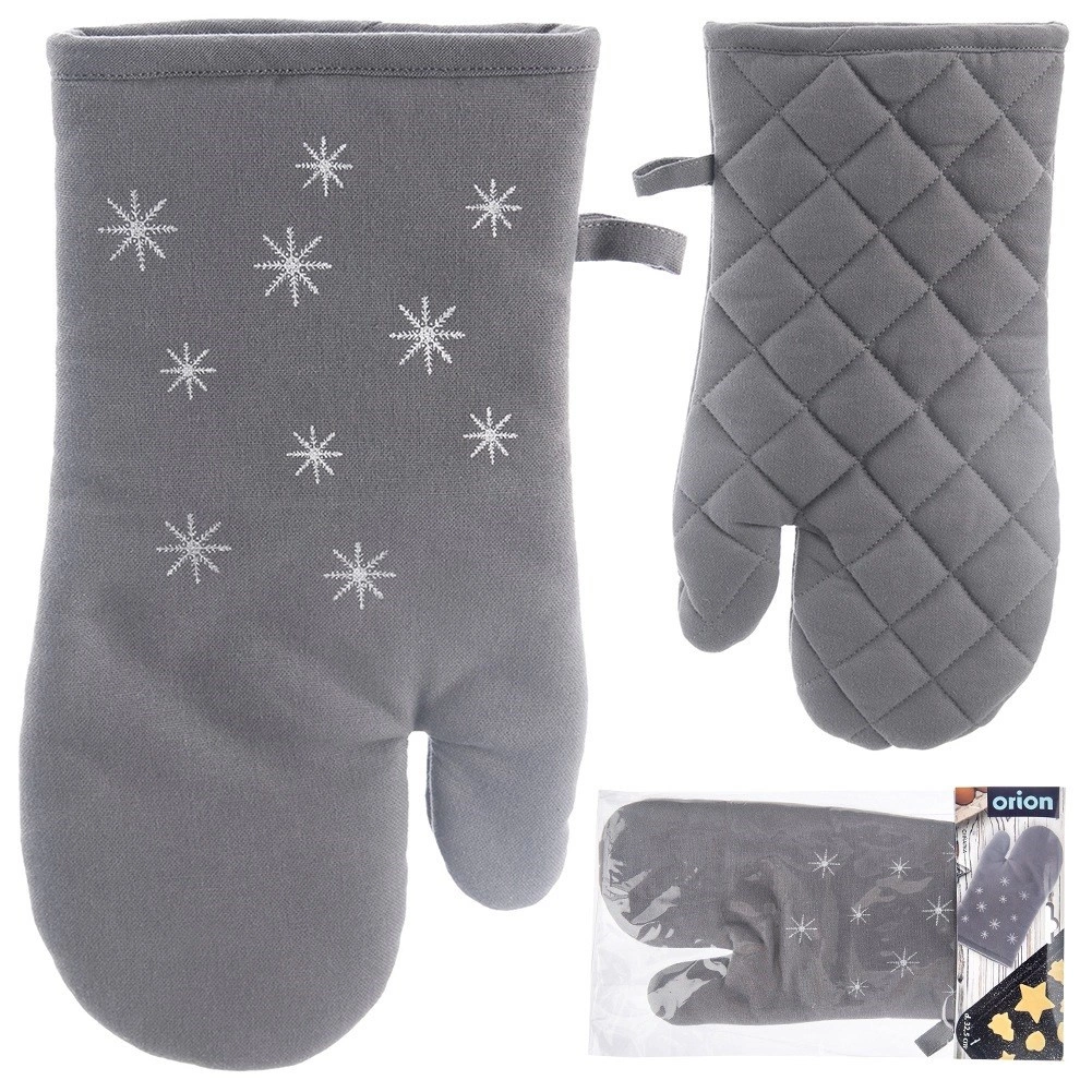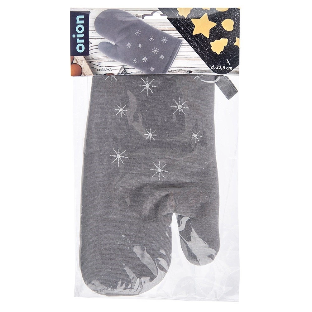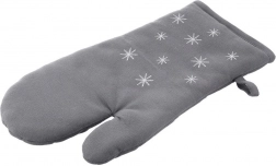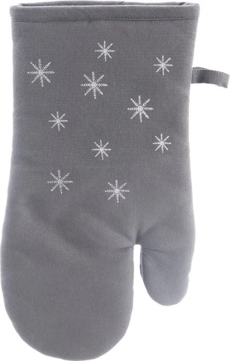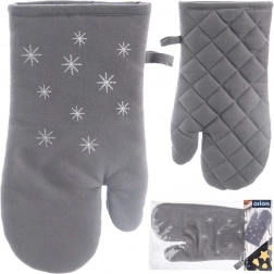 This cotton kitchen oven glove in grey with a subtle snowflake pattern is great for everyday use. It provides effective protection against high temperatures when handling hot cookware and baking sheets. The universal size 17 × 32.5 cm ensures comfortable wear on either hand.