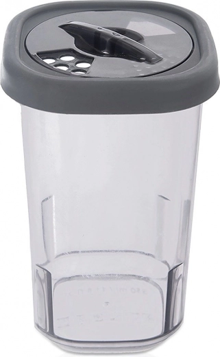 Practical 320 ml spice jar with a rotating lid and three dosing modes for precise sprinkling, medium dosing, and fast pouring of larger amounts. The transparent body lets you check the contents, while the lid ensures long-lasting freshness and clean storage. Made of durable BPA-free plastic, dishwasher safe, and usable from -25 °C to +90 °C.